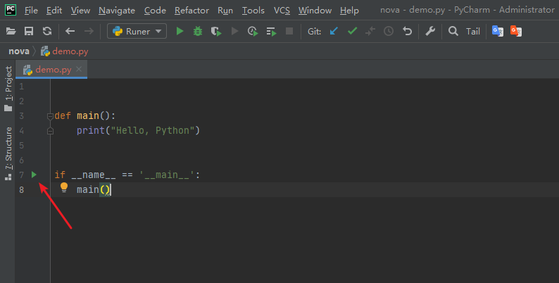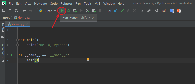 就会出现如下的运行按钮,点击第一个就是 Run 。