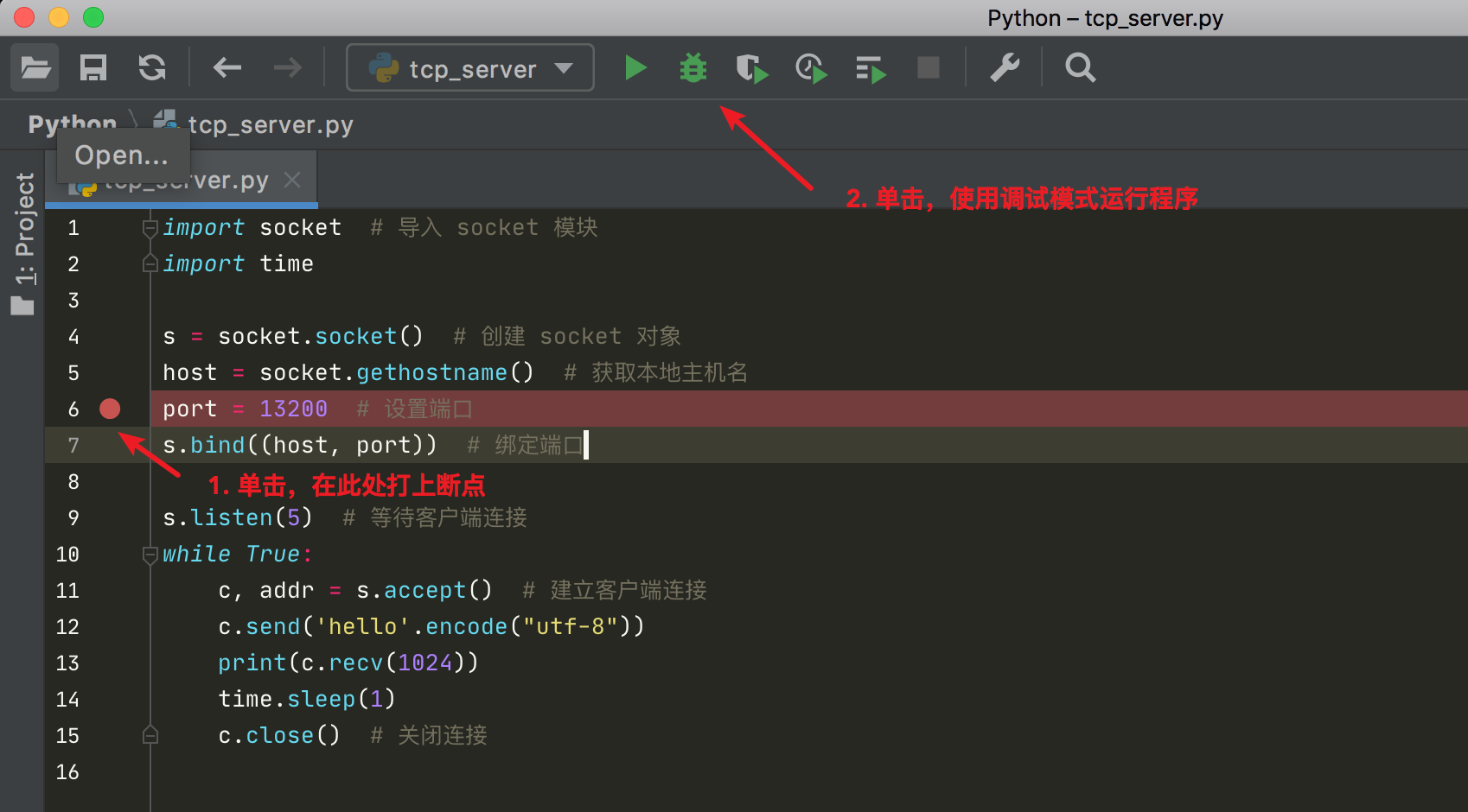 第二步:使用调试模式来运行这个 python 程序