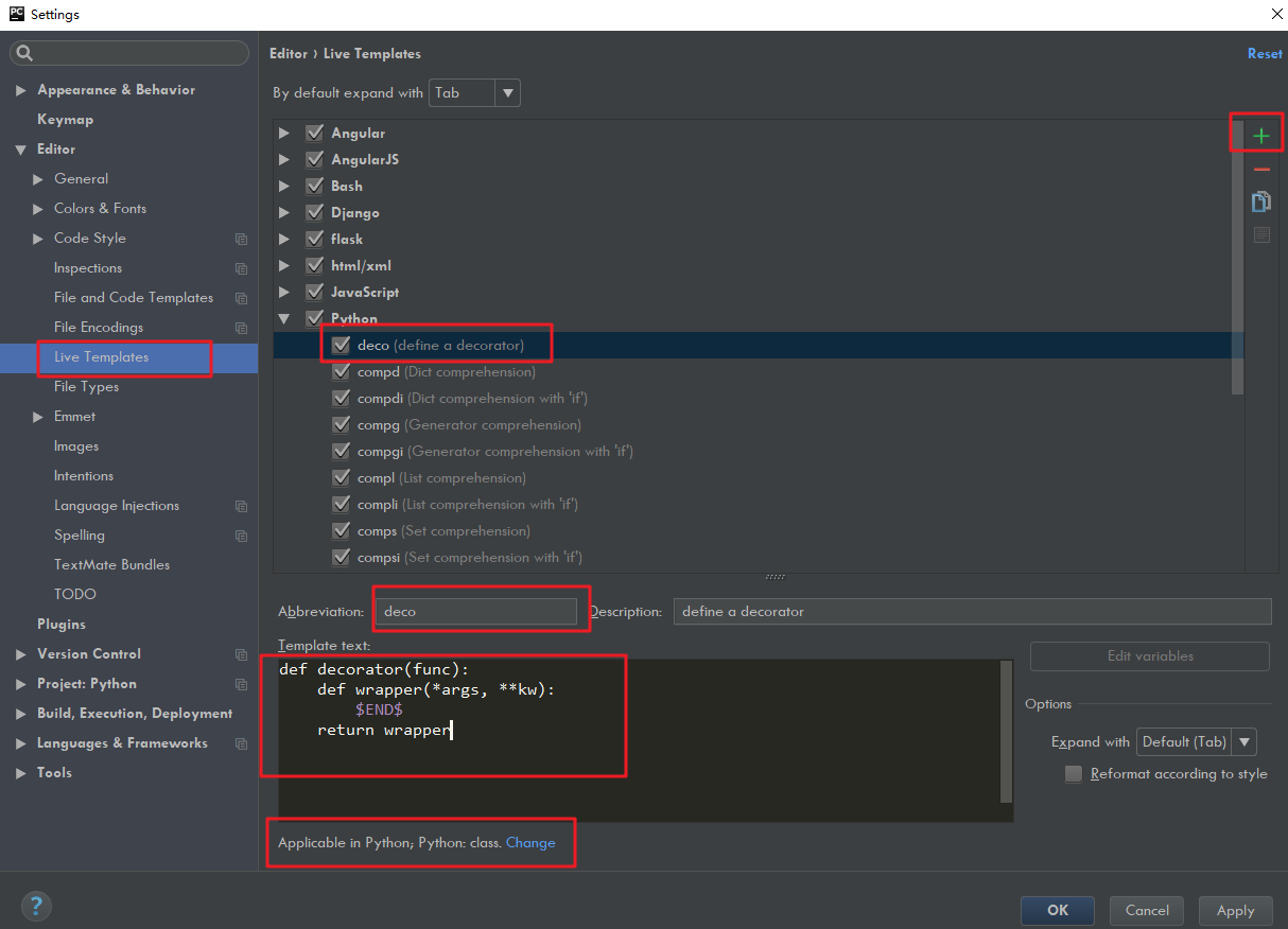 这样当我要定义一个最简单的装饰器时,只要输入 deco 再直接敲入回车就行啦。