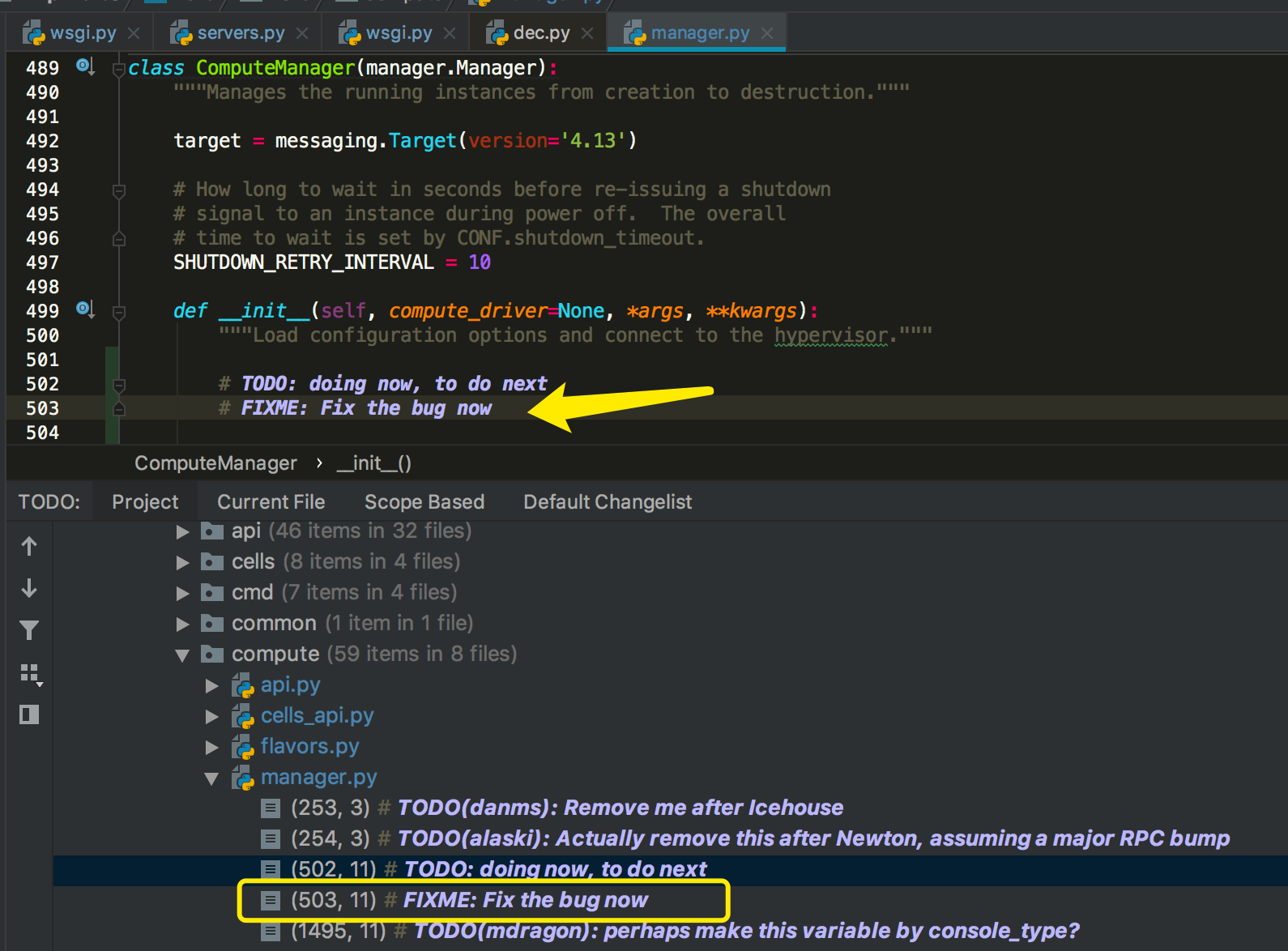 为了避免这个情况,我通常在别人打断我的时候,请对方给我一分钟的时间,使用PyCharn 的 TODO 功能快速记录下当前的思绪状态,以及下一步要做的事情。