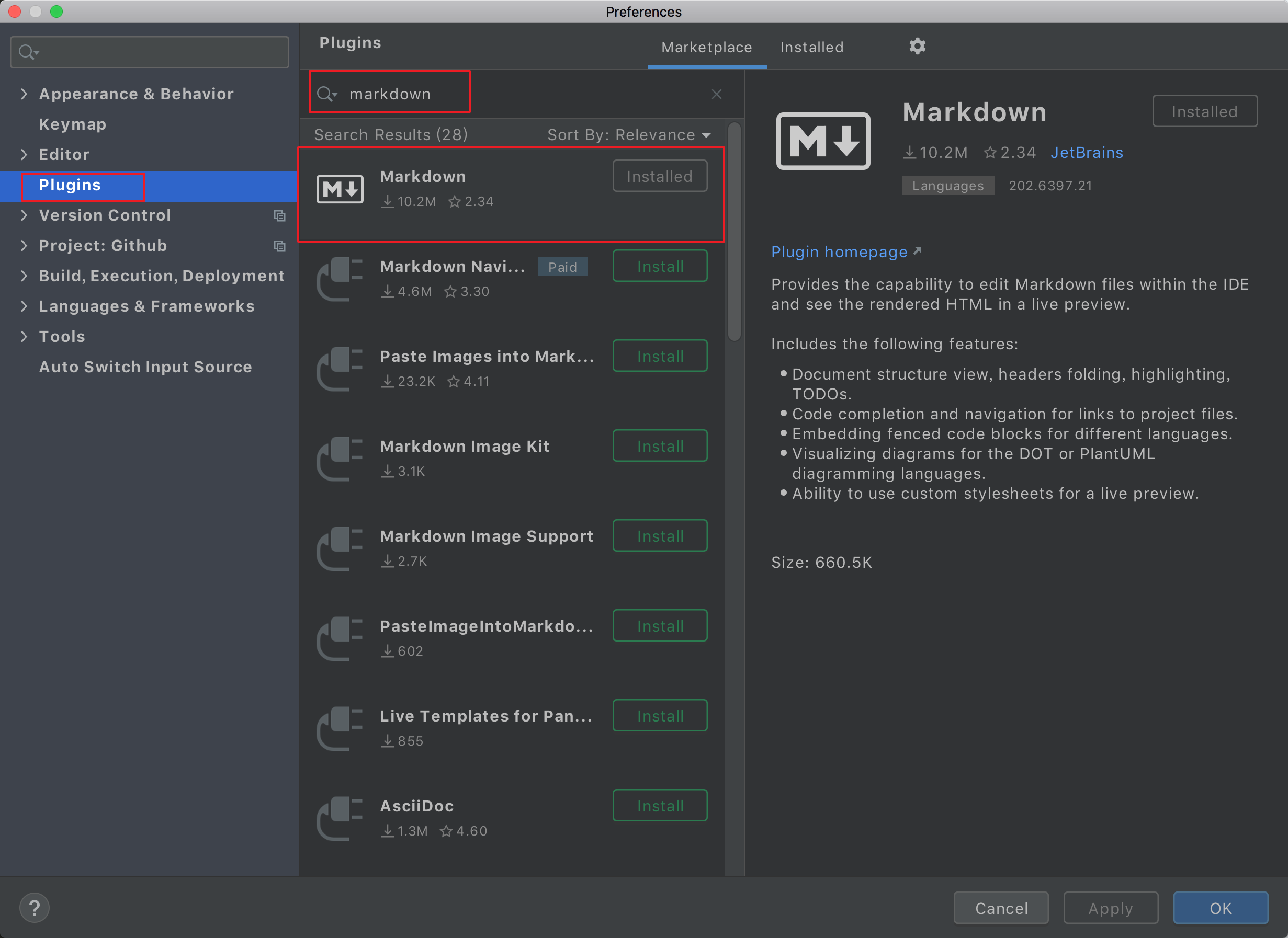 因此,如果要在 PyCharm 中阅读 Markdown 文档,可以装一下 Markdown support 这个插件。