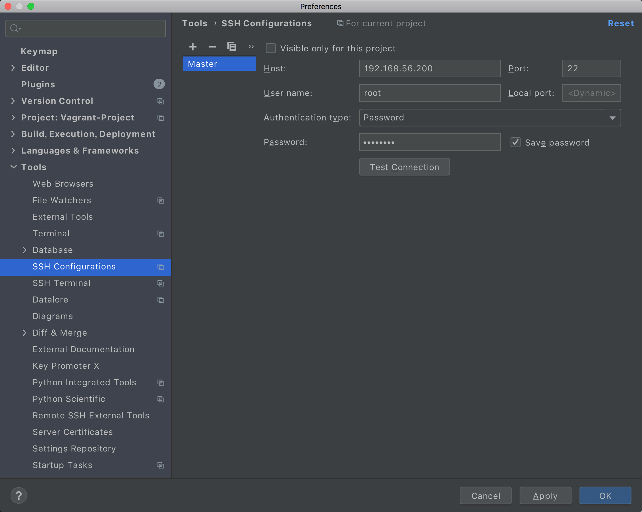 如果要保存 ssh 的连接信息,可以在如下位置添加
