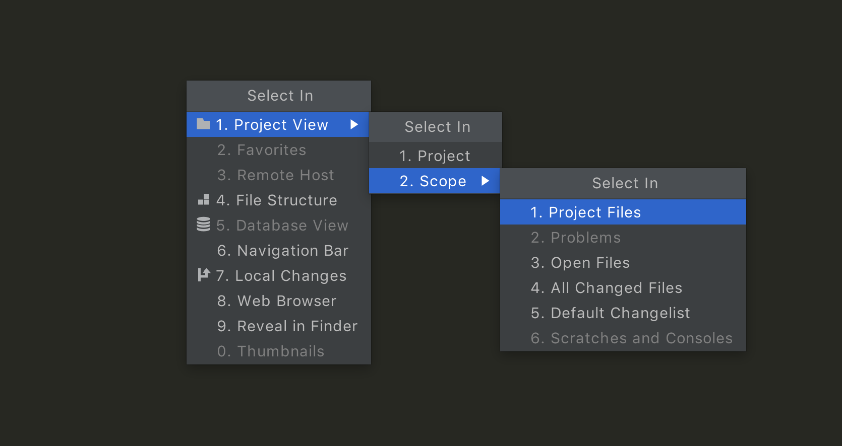 会弹出一个窗口,窗口会显示该文件可用的工具窗口有哪一些,使用方向键进行选择。