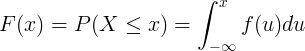 累积分布函数 F(x) 通过对连续随机变量 X 的概率密度函数 f(u) 积分计算。